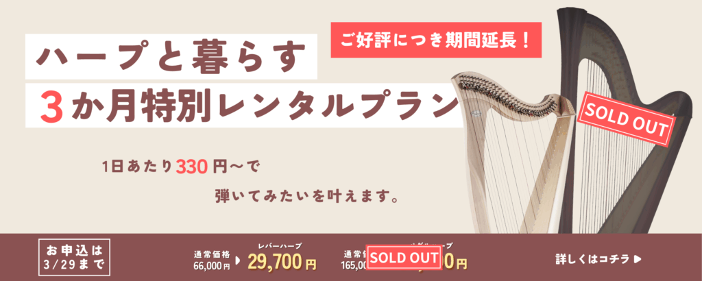 「ハープと暮らす 冬のレンタルハープ特別プラン」