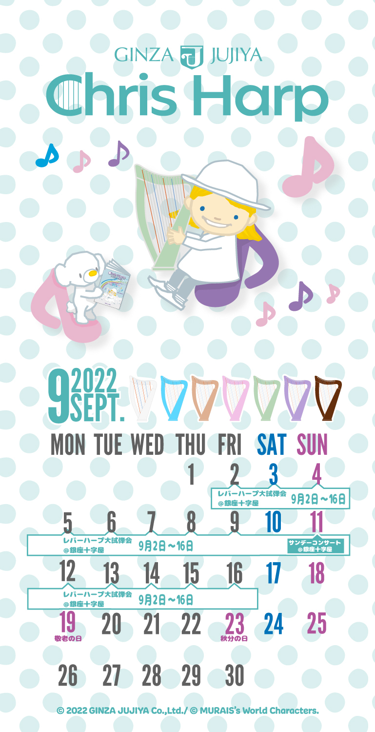 ■2022年9月 クリスハープオリジナルカレンダー壁紙